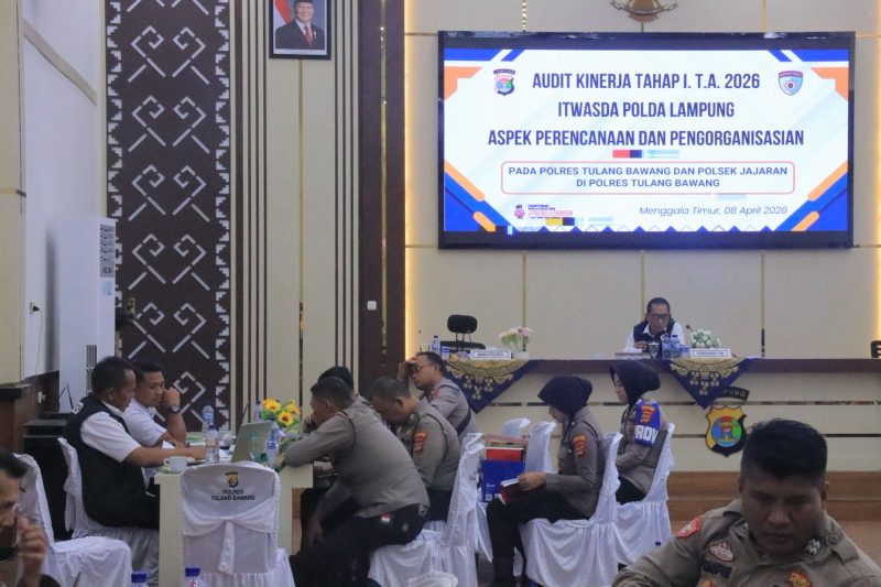 Tulang Bawang, 08 April 2026 – Jajaran Polres Tulang Bawang hari ini dikejutkan dengan kedatangan tim Audit Kinerja Tahap I Tahun Anggaran 2026 dari Inspektorat Pengawasan Daerah (Itwasda) Polda Lampung. Dengan semangat presisi dan komitmen tinggi, tim auditor siap melakukan bedah tuntas aspek perencanaan dan pengorganisasian di Markas Polres Tulang Bawang, demi mewujudkan Polri yang semakin profesional, modern, dan terpercaya!